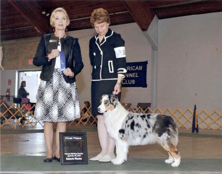 Call Name: “Lyric” Group 1 Puppy, two five point majors in ASCA her first weekend out plus a BOB and Best In Show. She finished ASCA in two weekends with three 5 point majors. http://www.shamrockaussies.com/
