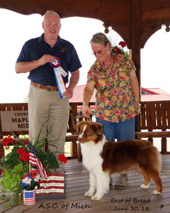 At the ASCA Nationals Pre-Show put on by Hill Country ASC Garth received a Premier award for Intact Best of Breed
